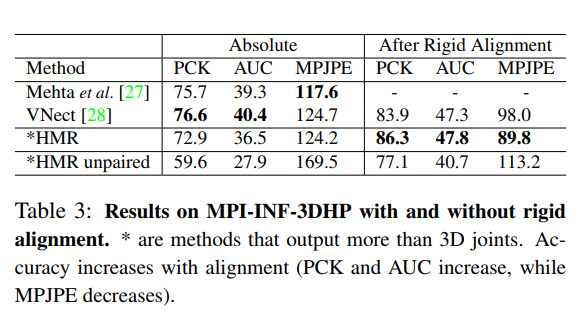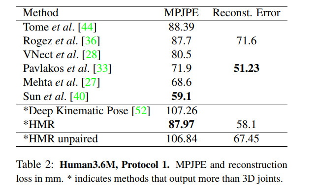 - Reconstruction error, which is MPJPE after rigid alignment of the prediction with ground truth via Procrustes Analysis.