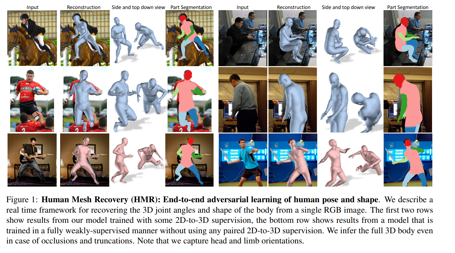 作者还解决了两个在重建工作的问题。其一就是缺少3D ground-truth数据,同时,已有的3D ground-truth绝大部分是在实验室环境下采集的,其对in the wild的2D图像泛化性很差。其二就是单视角情况下2D-3D mapping的问题,不同的3D shape存在对应一张相同的2D图片,在这些3D shape中,存在一些不正常的shape(may not be anthropometrically reasonable)
