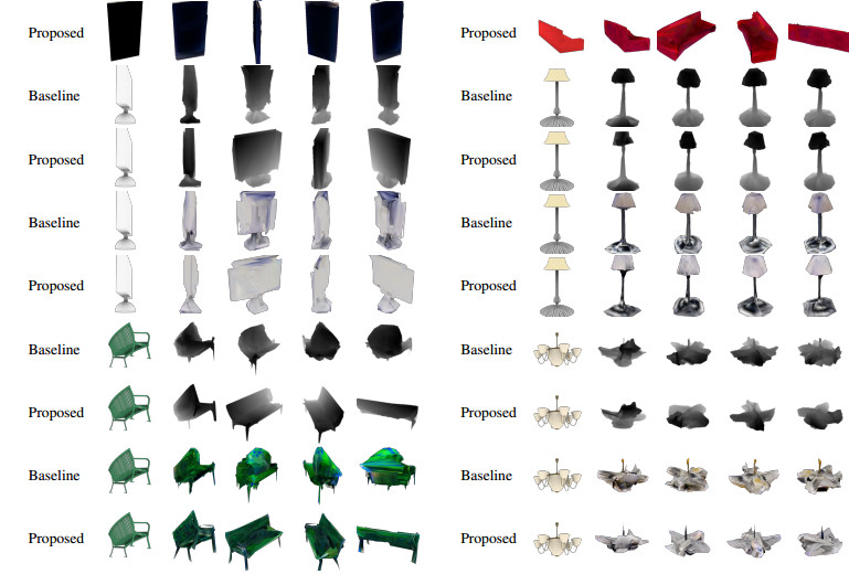 作者在文中提到,对于手机,沙发,飞机等物体。由于其形状单一,获取的多视角先验可以很好的解决在不可见视角下,重建效果差的问题。但是对于灯(lamp)这类物体,由于其形状的多样性,现有的网络并不能很好解决这个问题。
