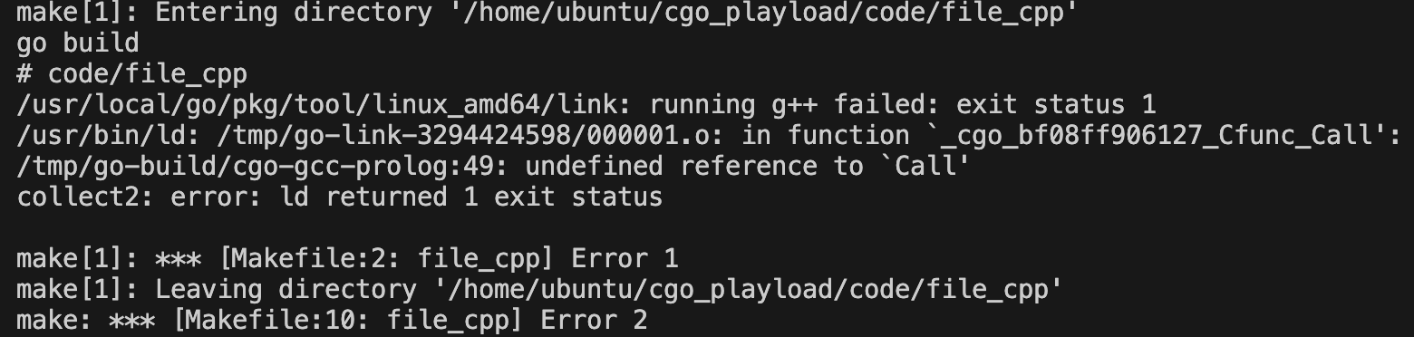报错信息的意思基本是指:在链接阶段,没有找到_cgo_xxxxx这个函数。这是因为使用cgo编译c/c++文件时,golang会根据文件名后缀选择不同的编译器,而gcc编译器和g++编译器在编译阶段生成的目标文件符号名称是不同的。所以导致的链接失败。因此,我们要用extern "C"关键字来修饰头文件,以此来满足两者符号名称一致。